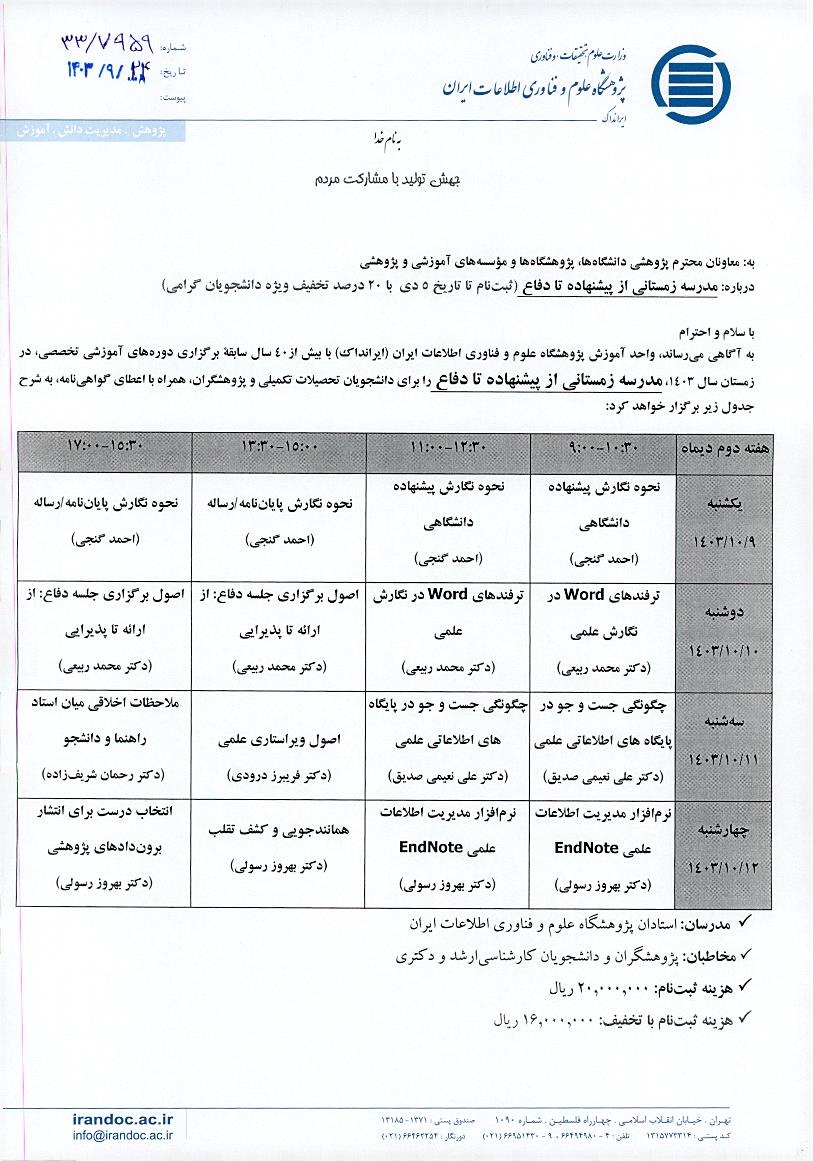 برگزاری دوره ی آموزشی مدرسه زمستانی از پیشنهاده تا دفاع برای دانشجویان تحصیلات تکمیلی و پژوهشگران